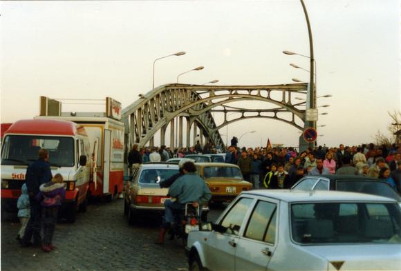 10. November 1989 Bornholmer Straße Border crossing was the first at which passport control was partially suspended on the night of 9th November 1989. Urheber: Jean-Marie Delbot