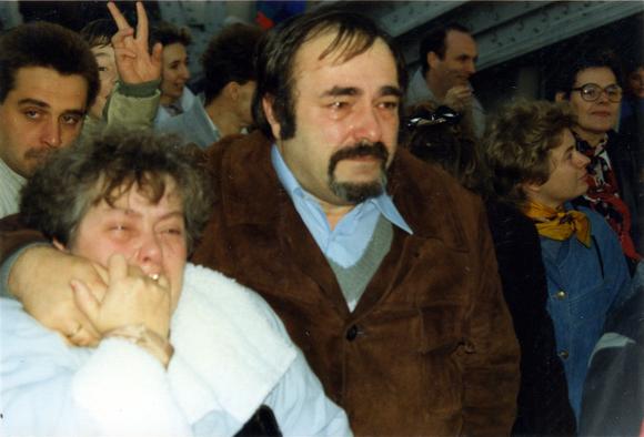 Am Grenzübergang Bornholmer Straße, während der Zeit der Mauer einer der sieben Straßenübergänge zwischen Ost- und West-Berlin (zwischen sowjetischem und französischem Sektor). Der Grenzübergang Bornholmer Straße war in der Nacht vom 9. zum 10. November 1989 der erste, an dem die Passkontrolen zeitweise eingestellt wurden.