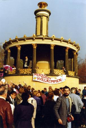 At Glienicke Bridge border crossing, which was reopened to residents of the GDR for the first time since 1961 on 10 November 1989.