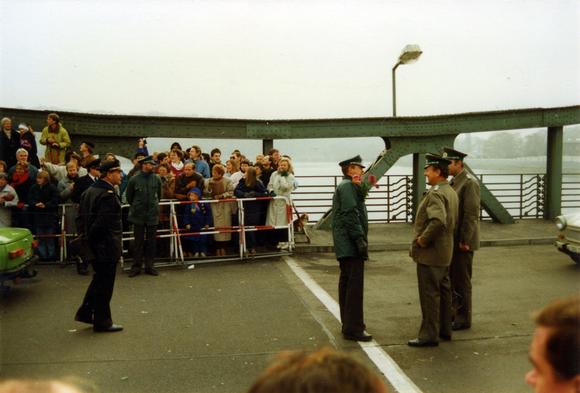 At Glienicke Bridge border crossing, which was reopened to residents of the GDR for the first time since 1961 on 10 November 1989