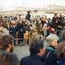 "Ankunft des Bundespräsidenten Richard von Weizsäcker und des Regierenden Bürgermeisters Walter Momper. Bad in der Menge, aber nur bis zum Ortsschild Potsdam, das immerhin von einem strahlenden R von W angefasst wurde."