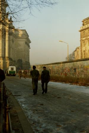"Diesen Anblick fand ich unglaublich. Die Grenzbeamten aus Ost und West gehen nicht gemeinsam, aber auf der gleichen Seite. Eigentlich ist man in dieser Zeit immer wieder über historische Augenblicke gestolpert."