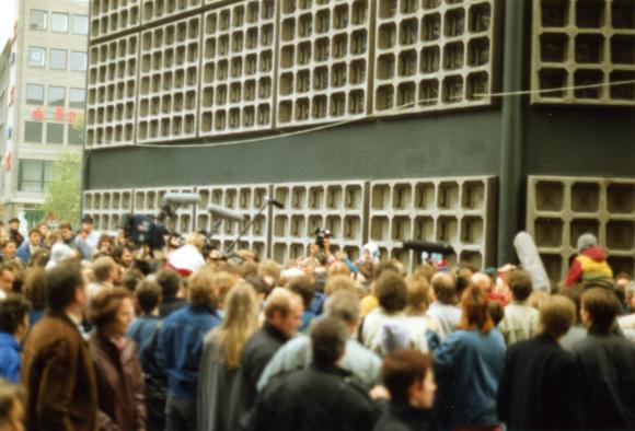 "Überall im Zentrum traf man immer wieder auf prominente Bürger, wie hier den Bundespräsidenten. Da er relativ klein ist, war er in der Menge schlecht zu fotografieren – nur sein weißer Schopf ist zu sehen."