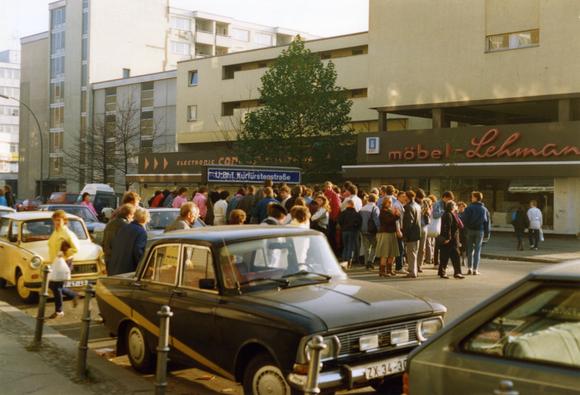 "Die Stadt war in diesen Tagen im Ausnahmezustand. Es war nicht mehr möglich, mit der U-Bahn aus dem Zentrum weg zu kommen, weil alle Stationen hoffnungslos überfüllt oder ganz geschlossen waren. Manchmal konnte man einen Bus ergattern, aber auch die waren völlig überlaufen. Ich bin an diesem Wochenende vom Ku'damm nach Steglitz nach Hause gelaufen, weil es anders nicht ging."