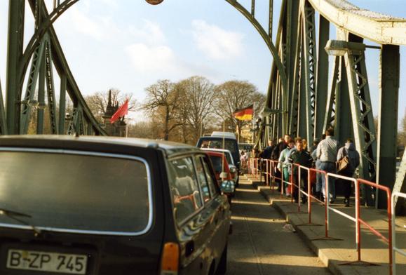 Stau in Richtung Potsdam auf der Glienicker Brücke, die am 10. November 1989 erstmals seit 1961 wieder für Menschen aus der DDR geöffnet wurde