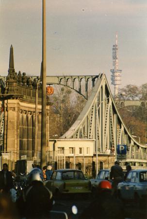 Stau am Grenzübergang Glienicker Brücke, der am 10. November 1989 erstmals seit 1961 wieder für Menschen aus der DDR geöffnet wurde