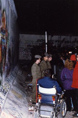 Grenzsoldaten und Menschenmenge auf der Westseite der Berliner Mauer in der Bernauer Straße, in der am 11. November 1989 ein neuer Grenzübergang eingerichtet wurde