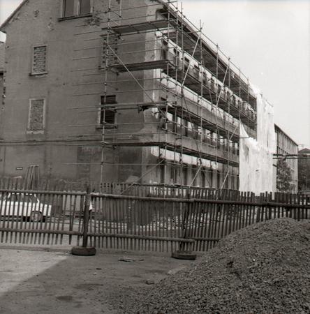 Reise in die DDR, Sommer 1990: Eingerüstetes Haus in Gera [33/109]
