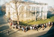 Warteschlange für Geldumtausch