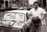 Newspaper vendor on the day of t...