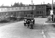Oldtimer an einem Bahnübergang