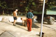 Abtransport von Mauersegmenten i...
