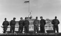 Grenzsoldaten in Alarmbereitschaft am Kontrollpunkt Checkpoint Charlie, 7. Oktober 1989