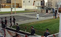 Grenzsoldaten in Alarmbereitschaft am Kontrollpunkt Checkpoint Charlie, 7. Oktober 1989