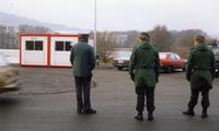 Grenzsoldaten in Alarmbereitschaft am Kontrollpunkt Checkpoint Charlie, 7. Oktober 1989